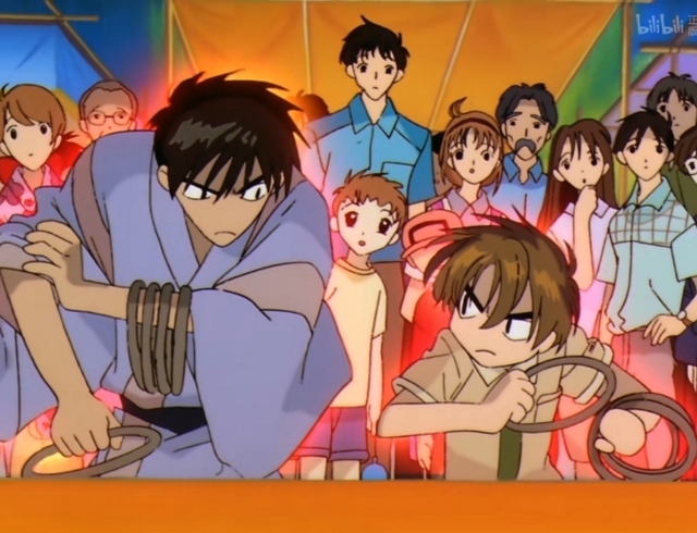 小狼立刻跑向旁邊的攤位,桃矢跟上一場男人之間大戰(zhàn)開始了,為了各自重要/喜歡的人而戰(zhàn),殺氣騰騰的