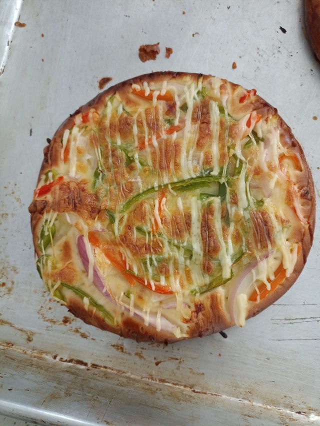 7.放上配料撒上芝士灑勻(切碎/長(zhǎng)的直接灑)