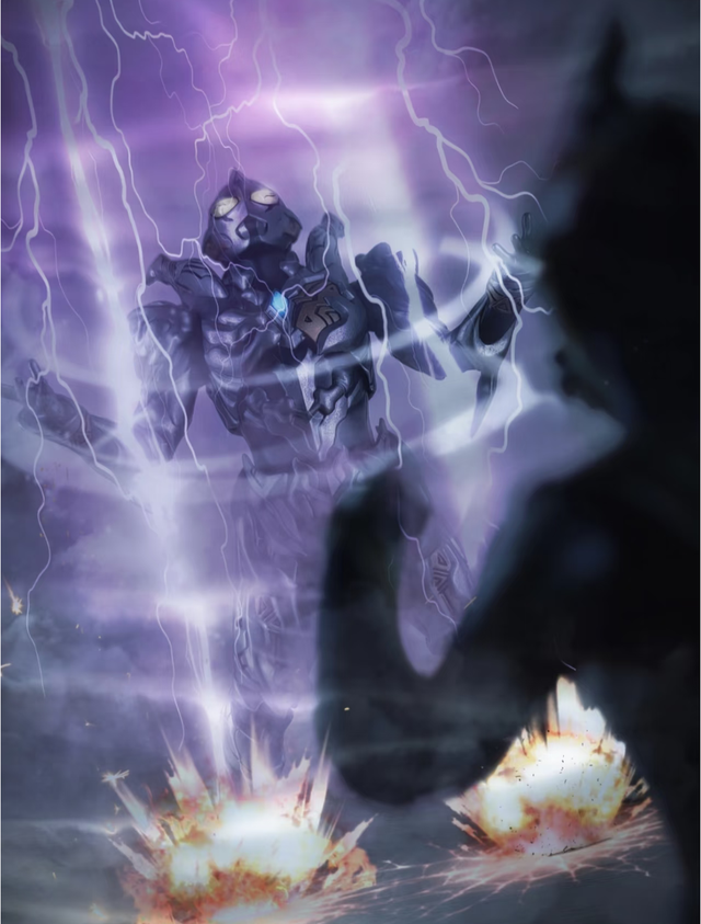 融合完成的加佐特發(fā)出震耳欲聾的咆哮。它形似翼龍,全身由扭曲的閃電人聚合而成,藍(lán)色的電光在體表流動。