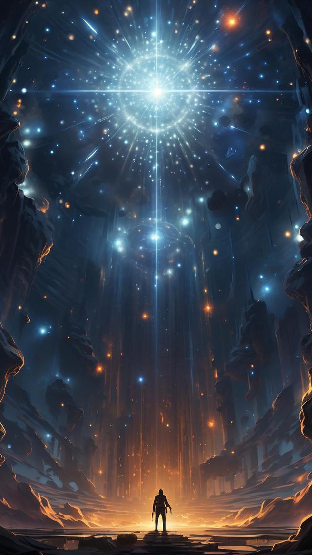 “我在你的上面”空靈的聲音再次響起,白熹抬頭,只見周圍的光點都朝向藍色能量球里,能量球發(fā)出耀眼的藍光,光芒散去后。