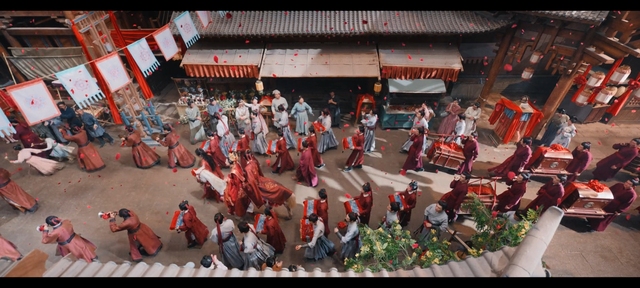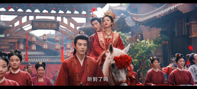 蕭北冥和鐘雪漫大婚之日,諸葛孔云為他們牽馬,鐘雪漫不似尋常女子一般坐在轎子中,而是和新郎一起坐在馬上周圍人群議論紛紛