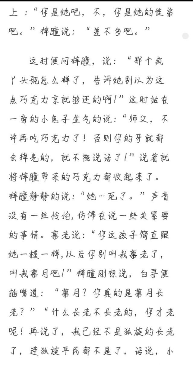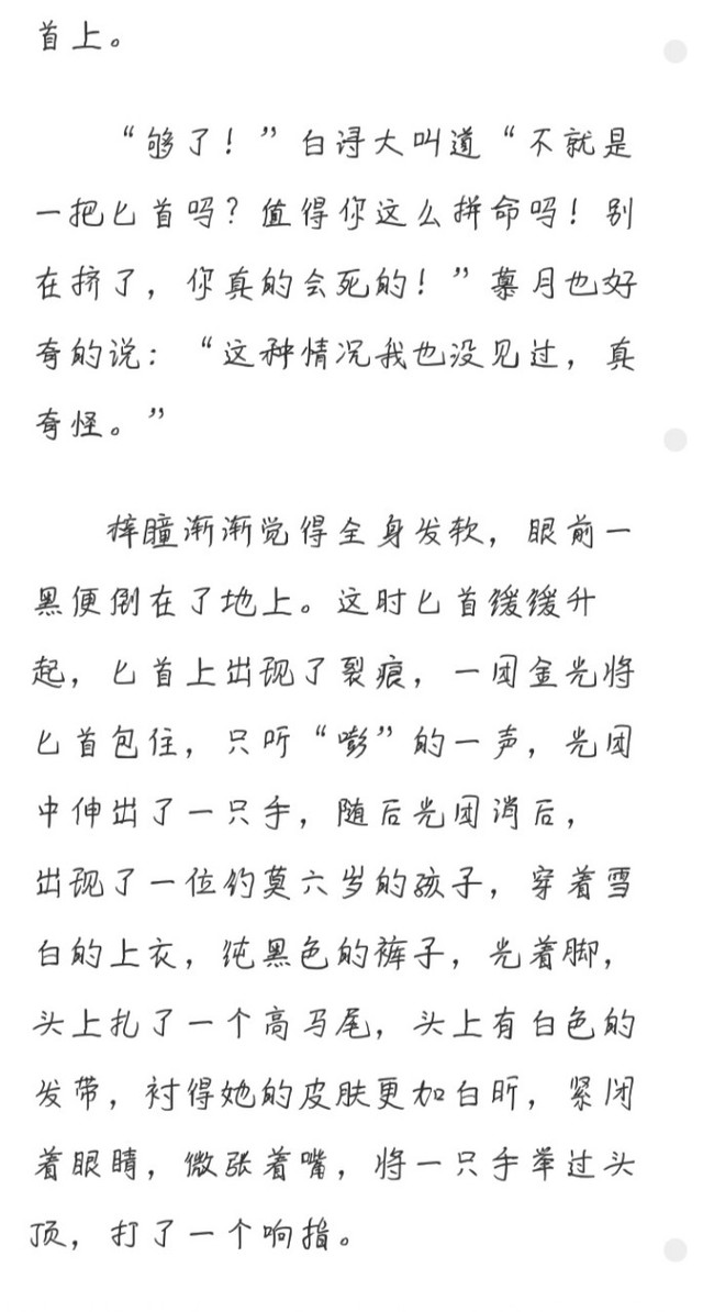 “姐姐,先去這所學(xué)院學(xué)習(xí),不要輕易的就去復(fù)仇,答應(yīng)我好嗎?”女孩的聲音像在乞求,“好?!辫魍乱庾R(shí)的說(shuō)出來(lái)。女孩眼中呈現(xiàn)出溫柔的目光,說(shuō):“姐姐,時(shí)間快到了,我要走了,如果遇到危險(xiǎn),就立刻將種子含在嘴里,可以大幅度增加你的力量,但是之后的一段時(shí)間內(nèi)你會(huì)非常容易受傷,要保護(hù)好自己,最后一會(huì),將這顆靈珠給那只小狐貍吃掉?!闭f(shuō)著從手里變出一顆白色的珠子,珠子附近飄著濃郁的靈力。將這些一并放到梓瞳身邊后,閉上雙眼輕生說(shuō):“我將小落留給你,讓她保護(hù)你吧,再見(jiàn)?!闭f(shuō)完,少女倒在地上。