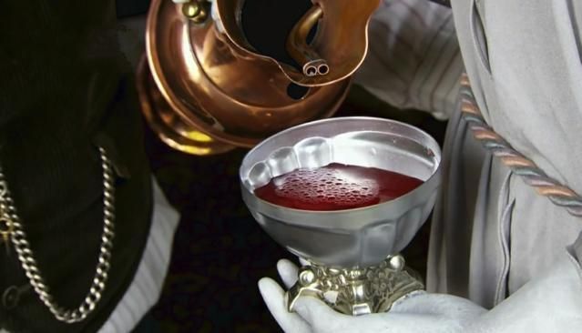 說著,凱麗茜將一個酒杯放在了“它”的手裡,只見紅酒從兩個導(dǎo)管緩緩流出。直到酒杯倒?jié)M,方纔停止流動。