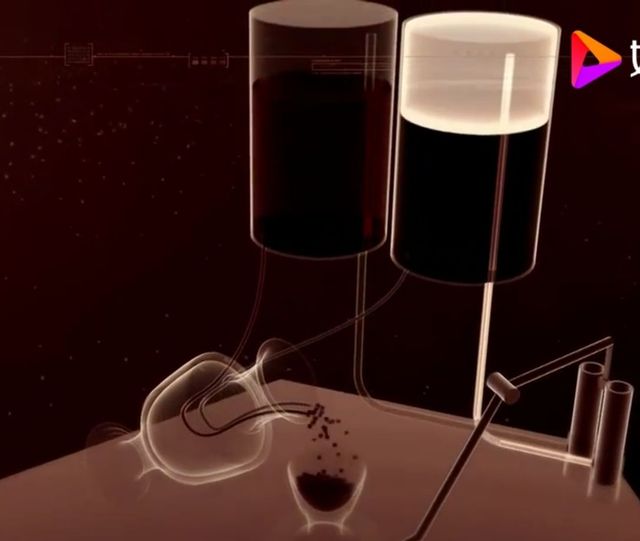 當(dāng)平衡裝置下降至下滑容器的底部時,雕像將停止移動。此時,“侍者”已經(jīng)來到了參會者旁邊,準(zhǔn)備為他斟滿酒。