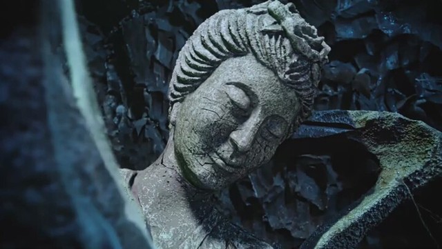 抬起頭一看,那舞天女正在伸展身子,她身子的碎石不停地掉下來。