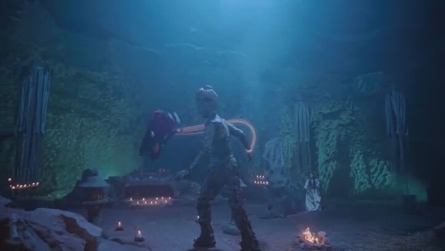 阿洋上竄下跳來躲避舞天女的攻擊。
