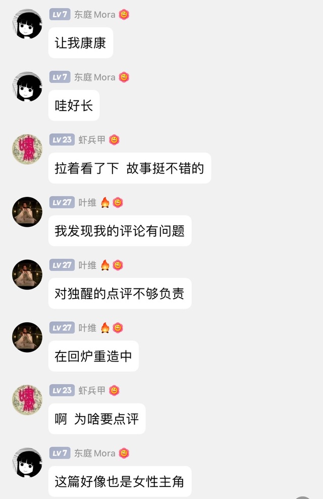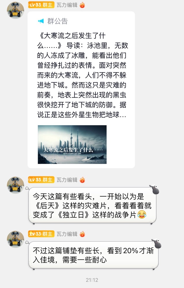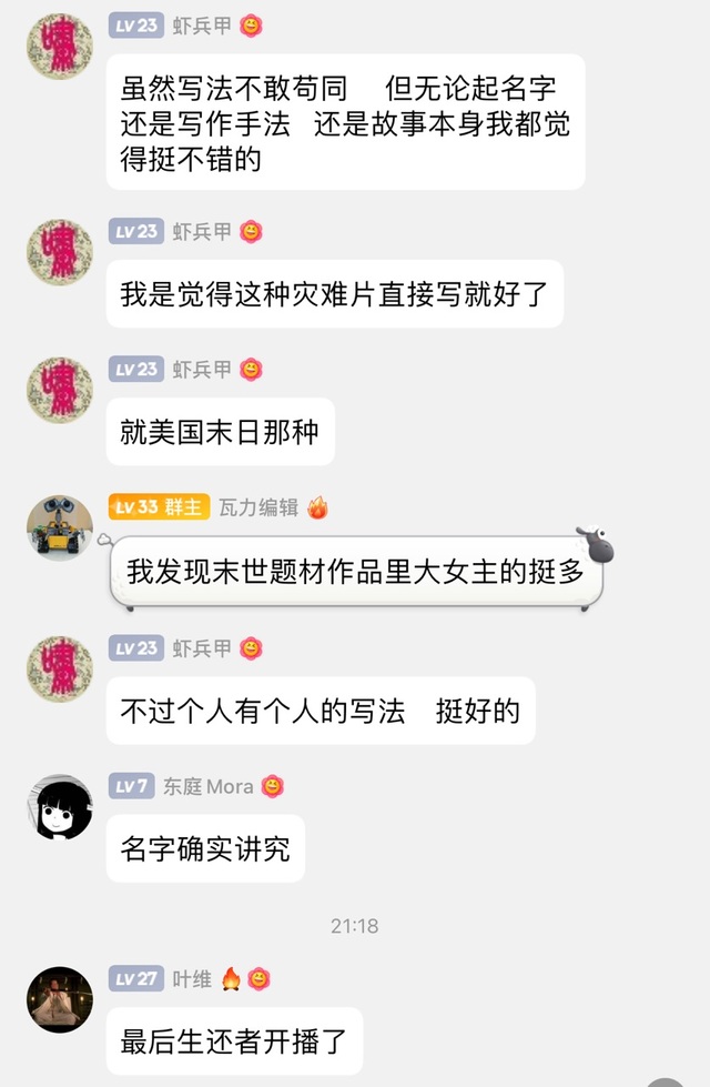 總得來說故事內(nèi)容豐富,情節(jié)完整。尤其在女主注射超能藥劑后冒險(xiǎn)前往地面并與外星黑蟲戰(zhàn)斗的描寫頗為精彩。但故事前半段過于平淡和日?;?。文學(xué)作品講求的是戲劇性和陌生化。建議作者進(jìn)行適當(dāng)?shù)膭h減,加快節(jié)奏。最好能夠再增加一些主角團(tuán)隊(duì)與惡劣環(huán)境搏斗的驚險(xiǎn)場(chǎng)面。