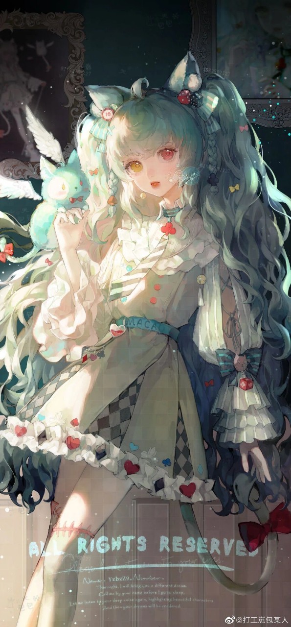 一個身穿淺綠色連衣裙的女孩兒抱著一只貓緩緩走來。