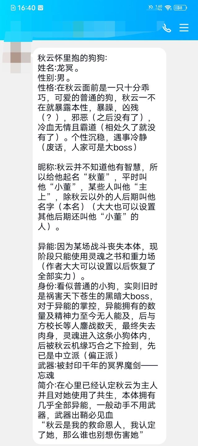 晨秋(作者)轉(zhuǎn)學(xué)生就是某只Dog投稿的人物啦,上介紹